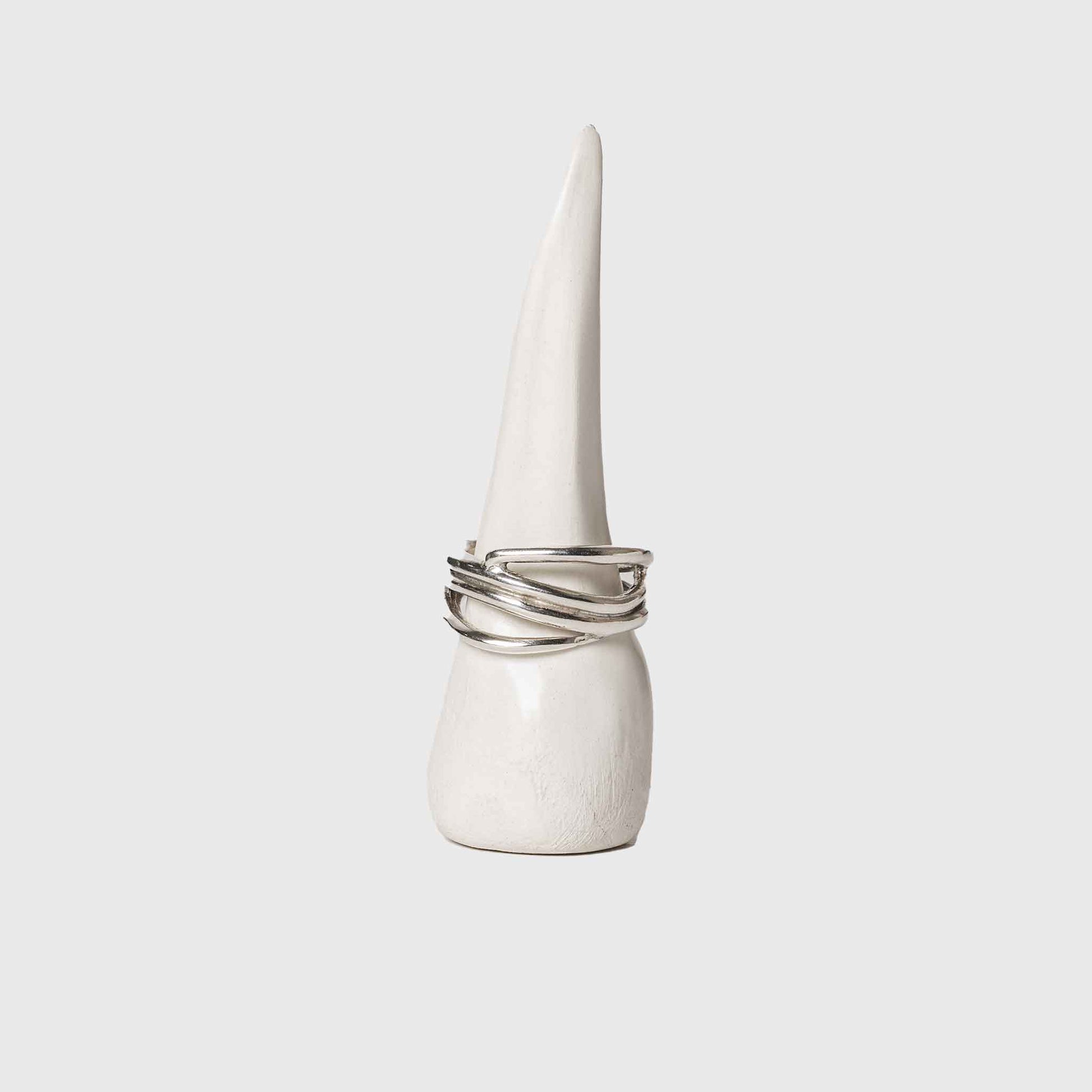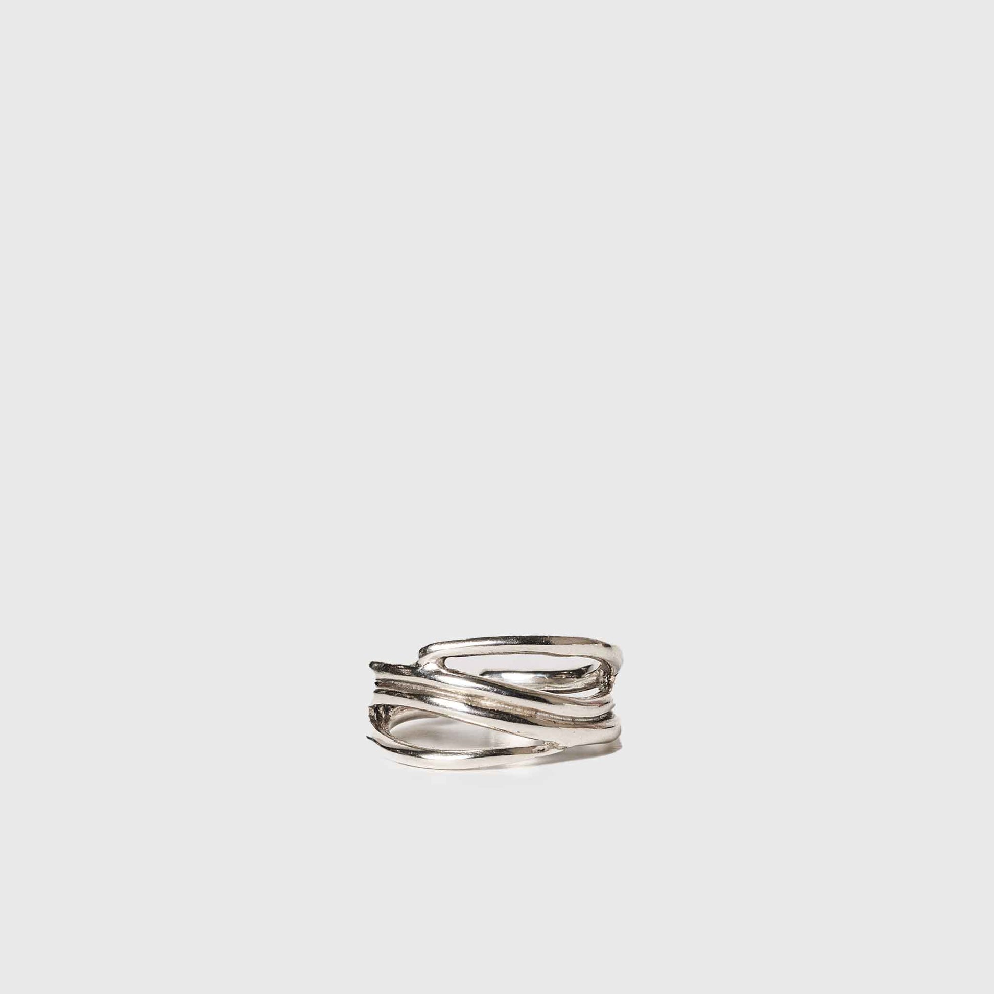 Handmade silver wide ring with mesh and opening at the back to adjust.