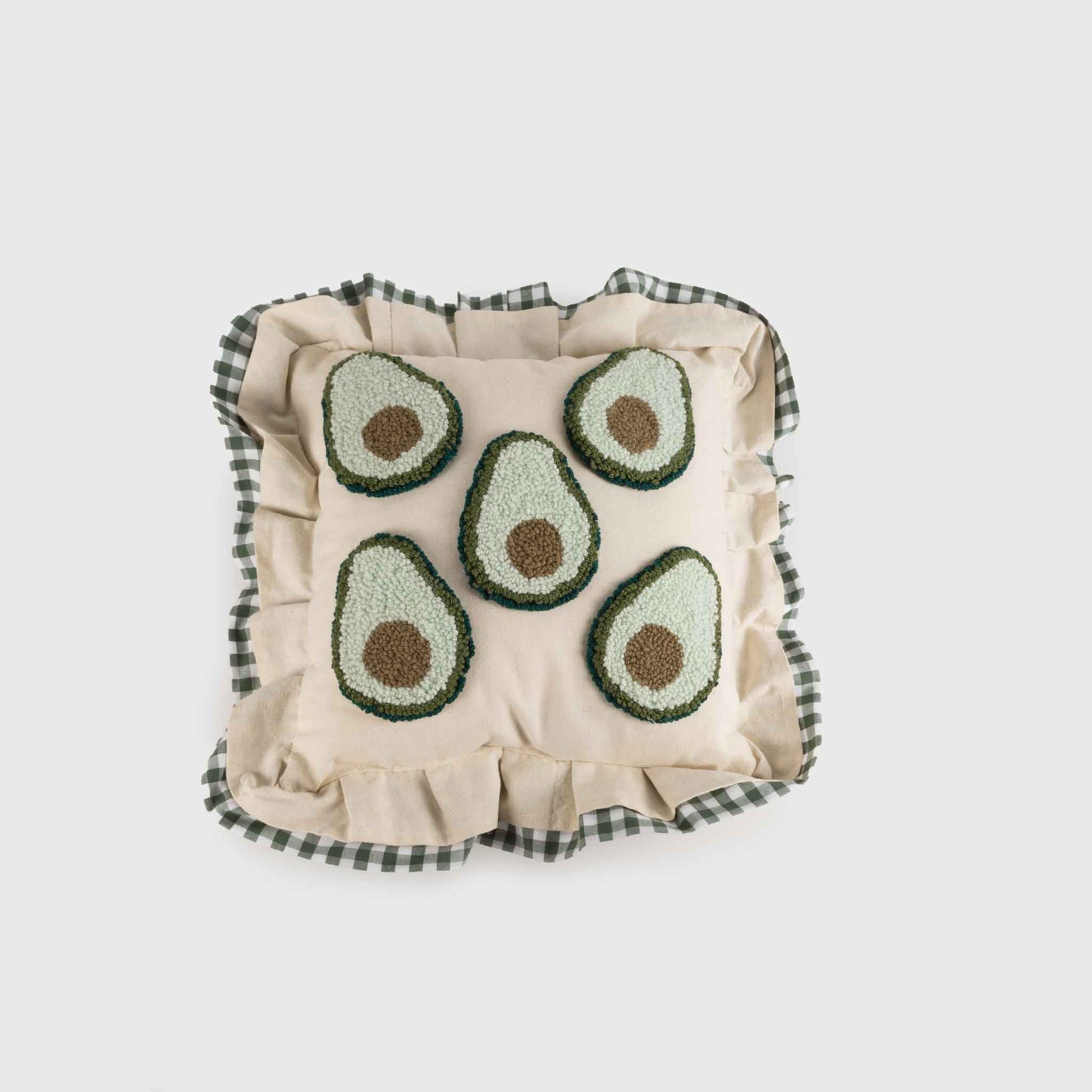 Add a different touch to your sofa, your bed, or your armchair that will cheer you up every time you lie on it! 100% handmade pillow with avocado embroidery from acrylic thread on 100% cotton fabric. Hand wash in cold water without spinning.