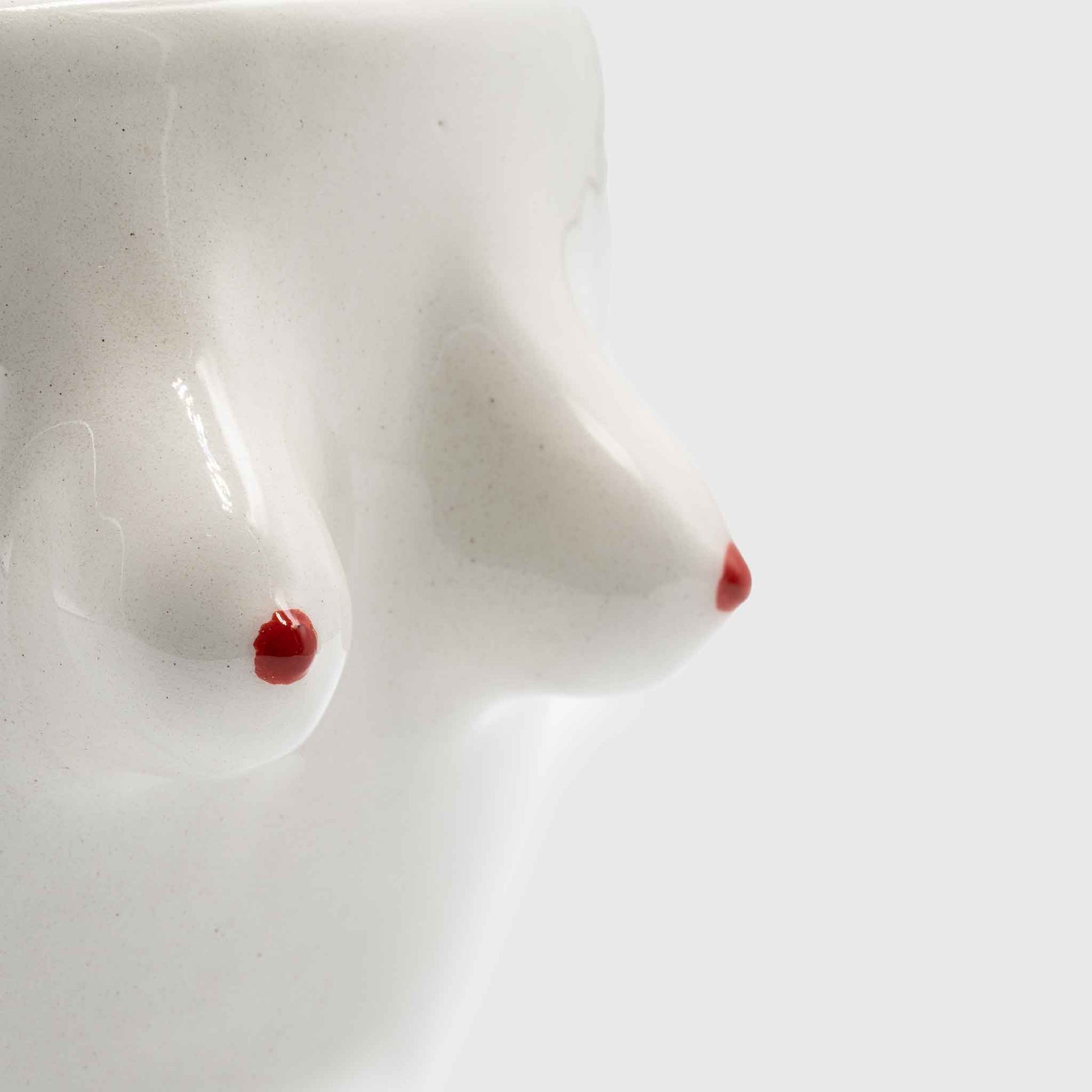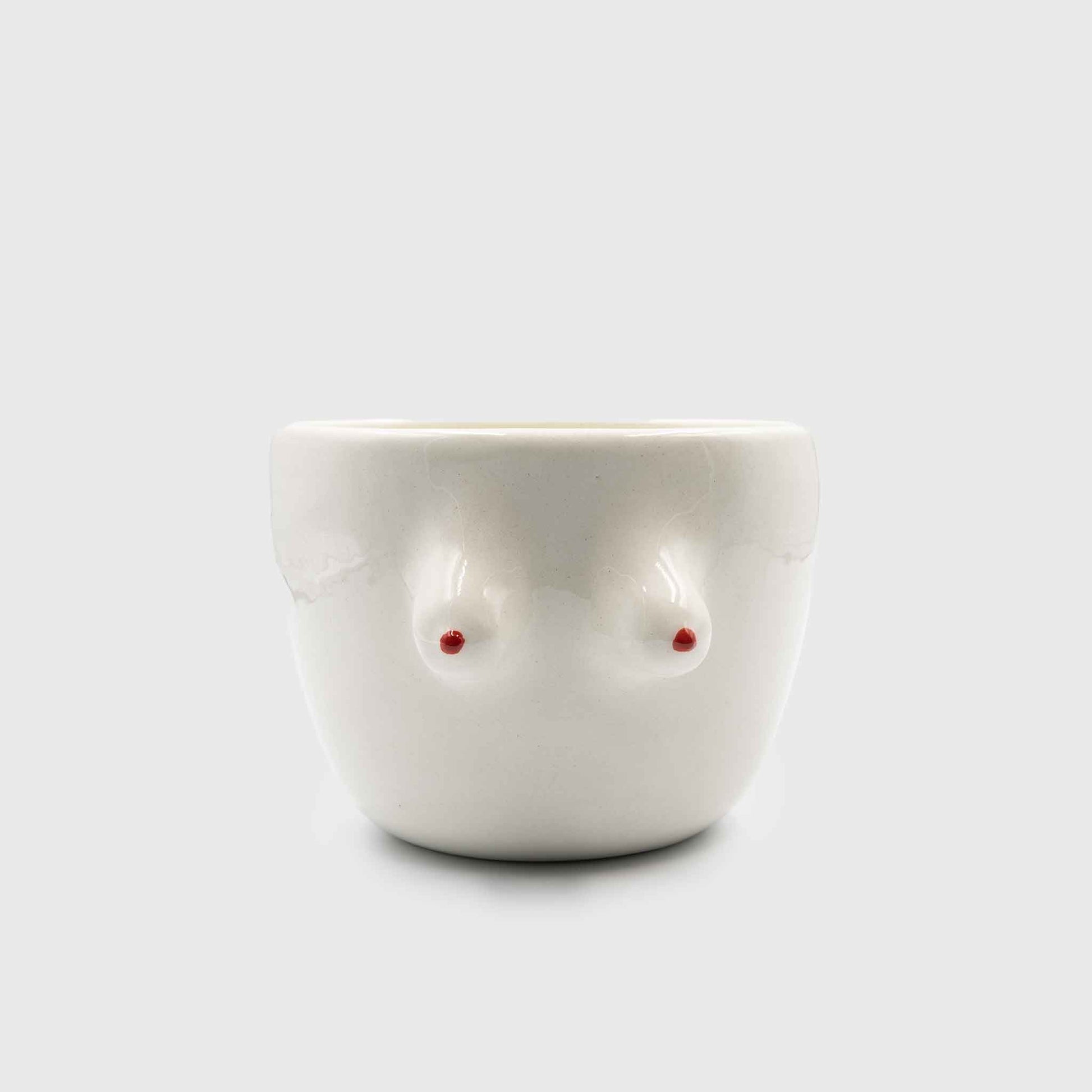 Pot made of high quality white clay, known for its durability and clean, elegant appearance. Decorative Breasts: The pot features a unique decoration with sculpted breasts, adding a playful and personal element. Note: Each pot is uniquely handmade, so slight variations in designs and decoration may occur. These variations add to the charm and uniqueness of each piece.