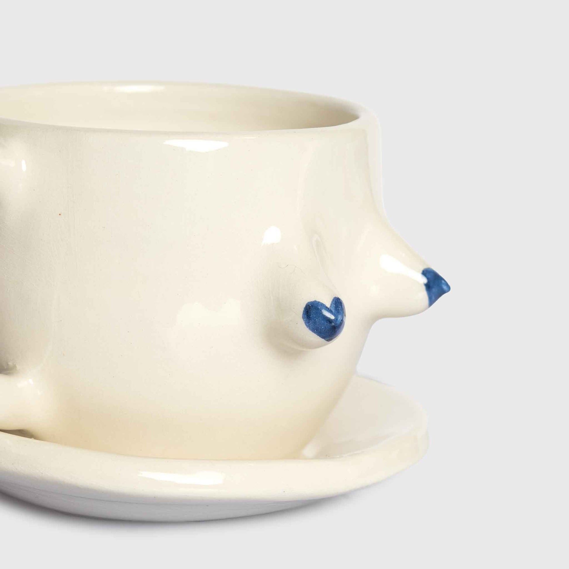 Ceramic handmade espresso mug. Made of high quality white clay, which gives durability and elegance. Use: Perfect for enjoying your lungo espresso, with a design that retains the heat and brings out the aroma of the coffee. Decorative Chests: With fun chest decoration, which adds an original and cheerful element.