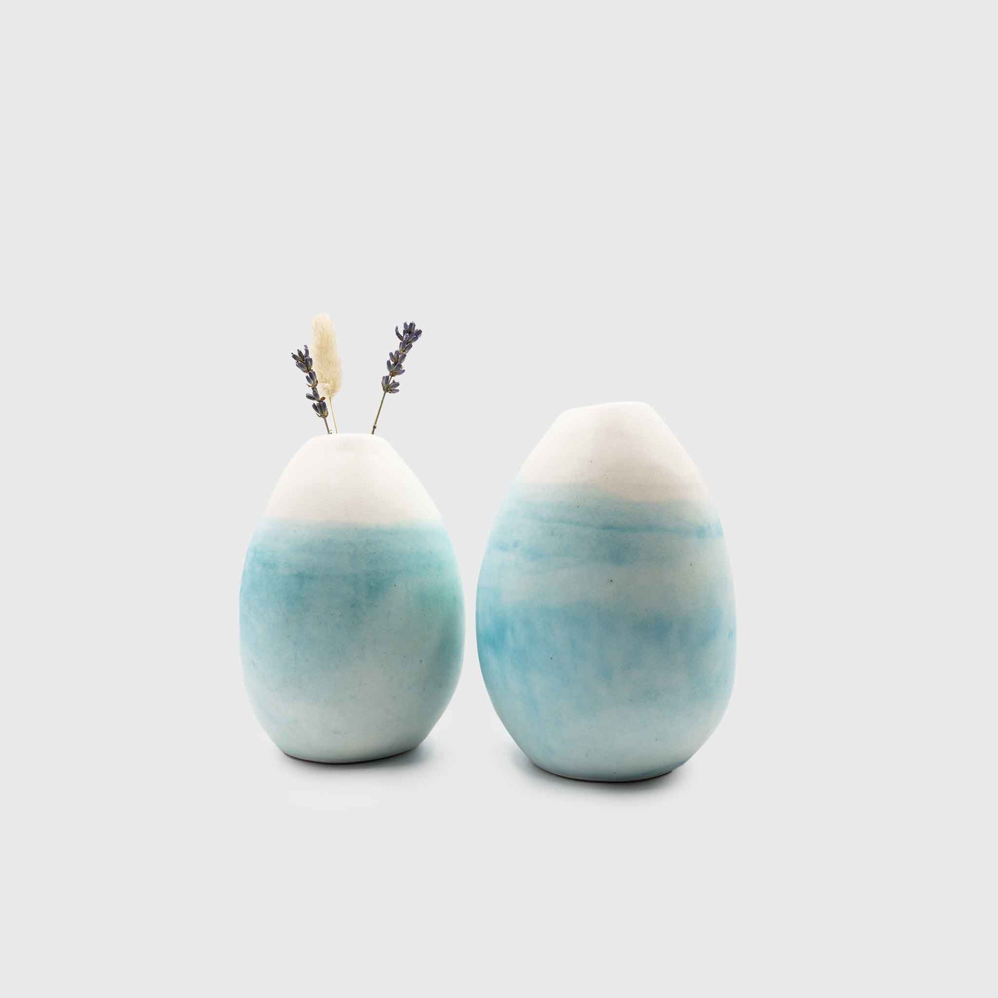 Handmade ceramic vase with blue details. Εarthenware clay, fired at 1035 °C.