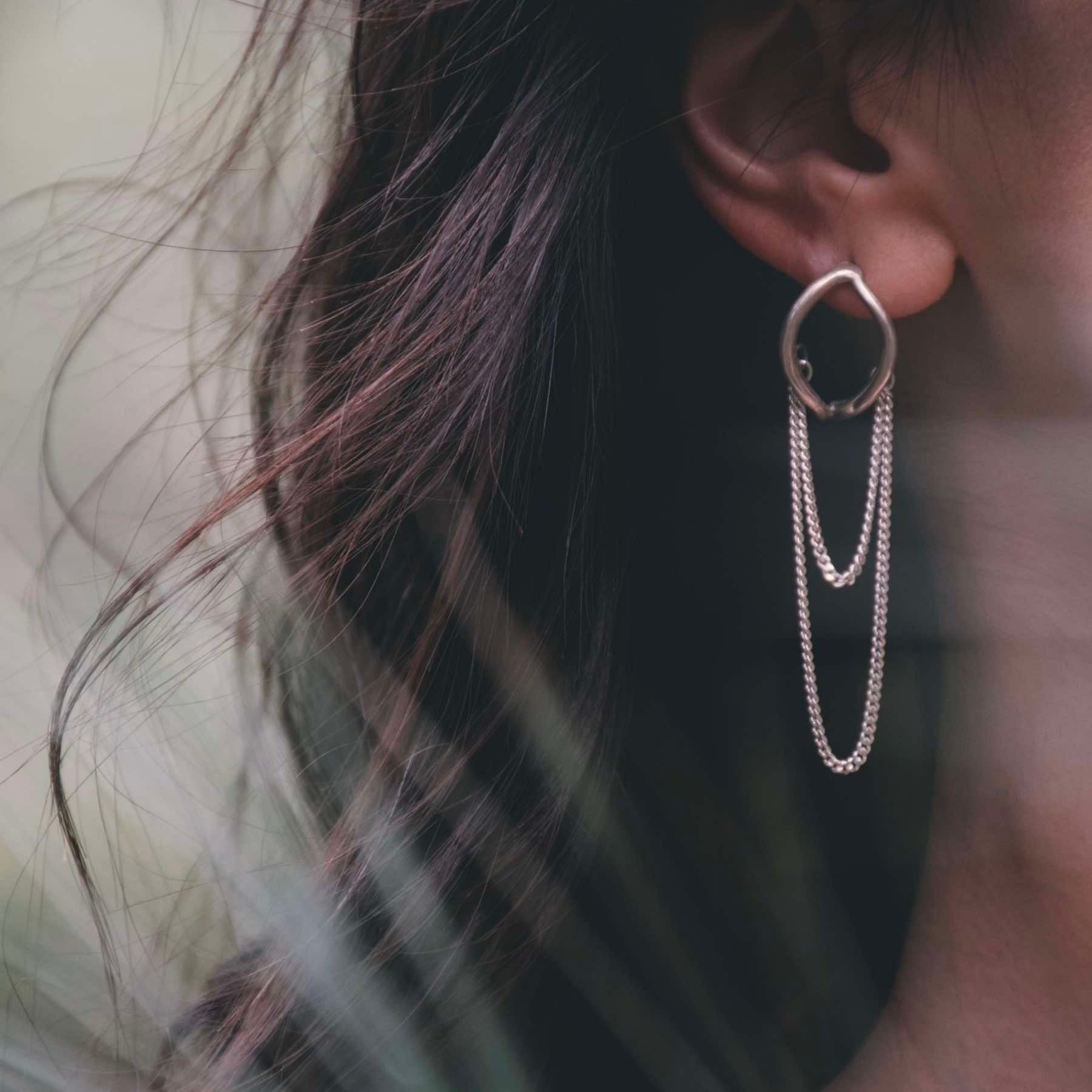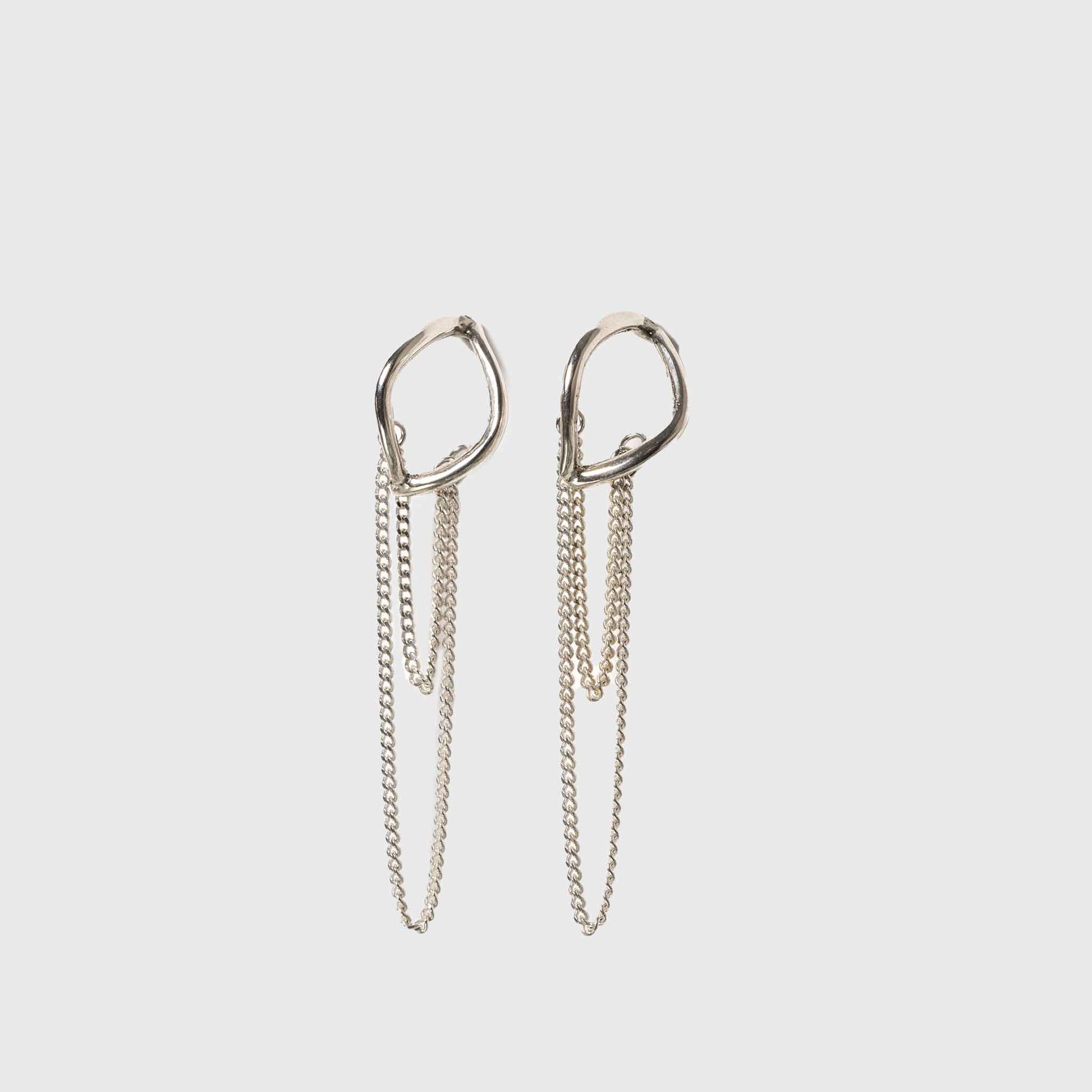 Handmade silver dangle earrings with double chain. Total length 6.5 cm.