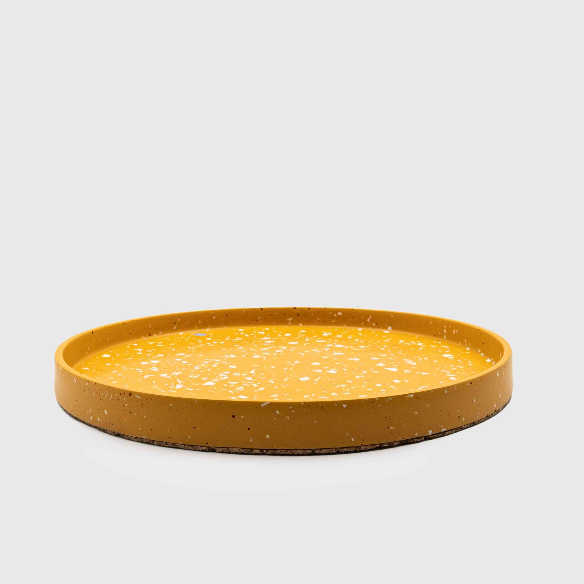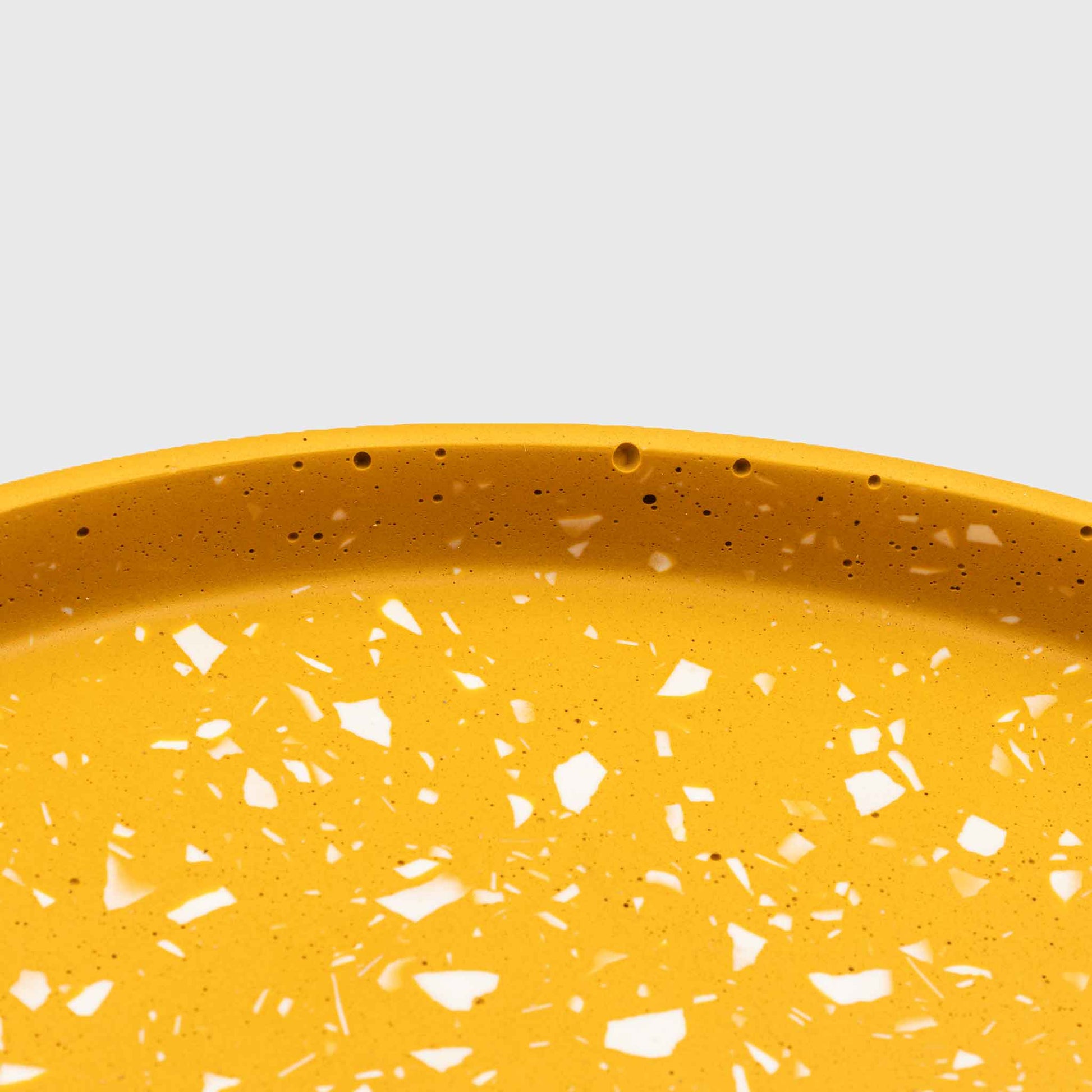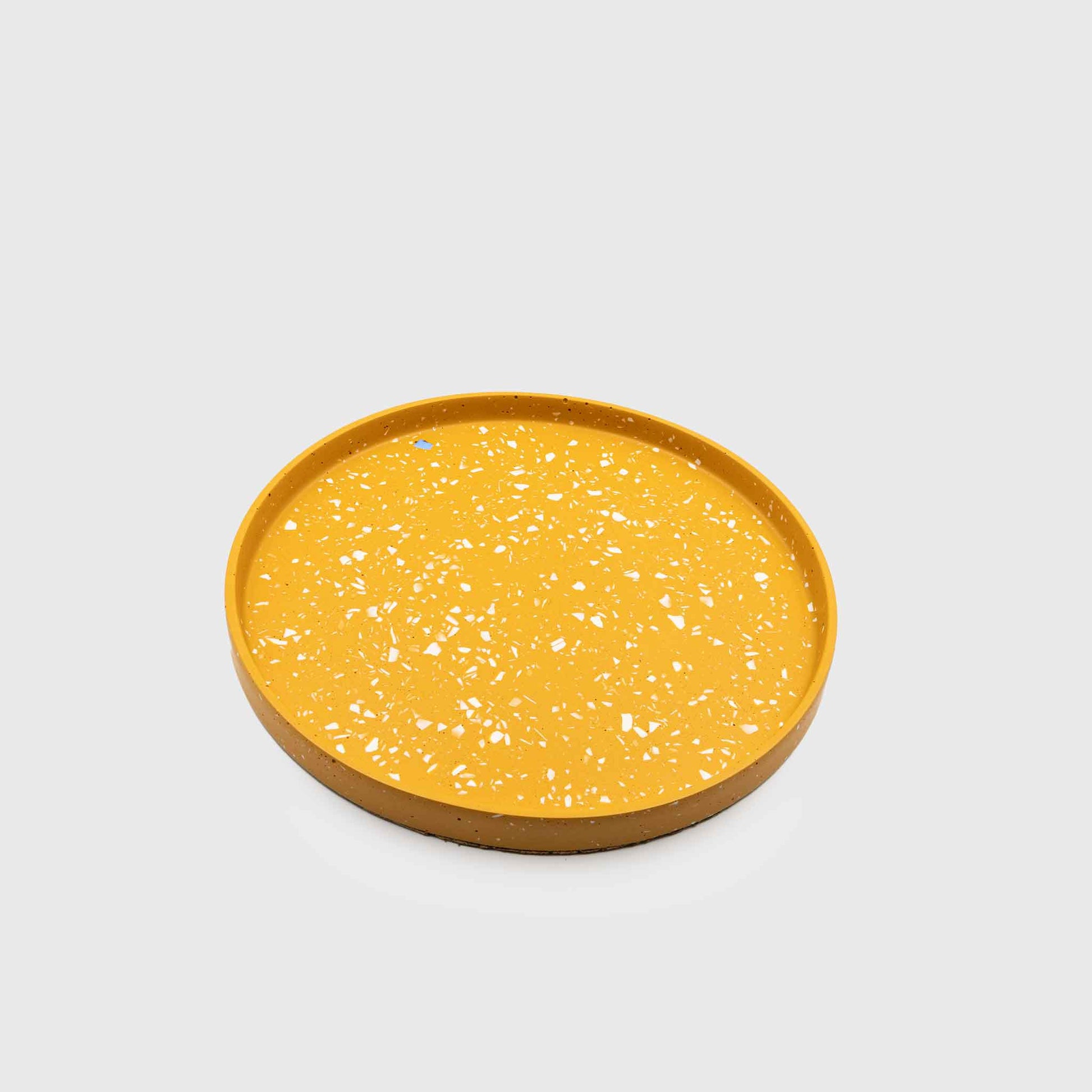 Handmade tray ideal for fruits, candles, plants, perfumes, small objects and anything else you can imagine. With an earthy shade of ocher and off-white terrazzo.