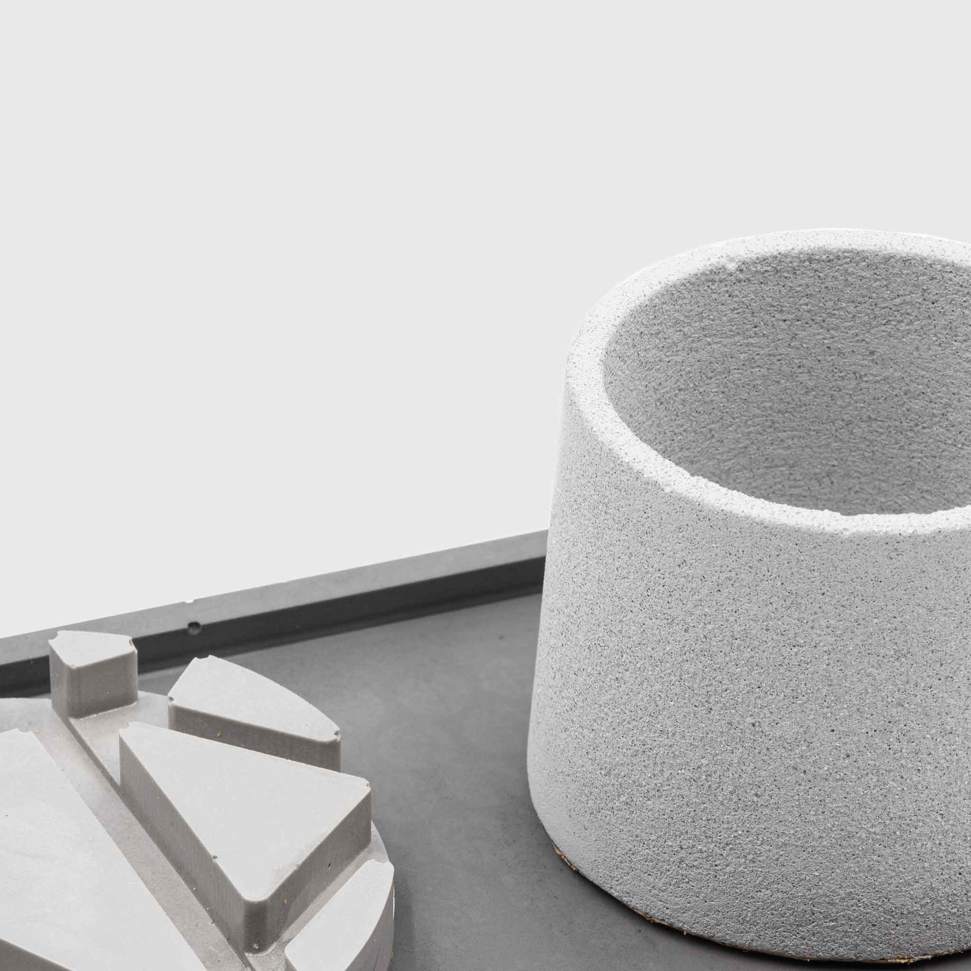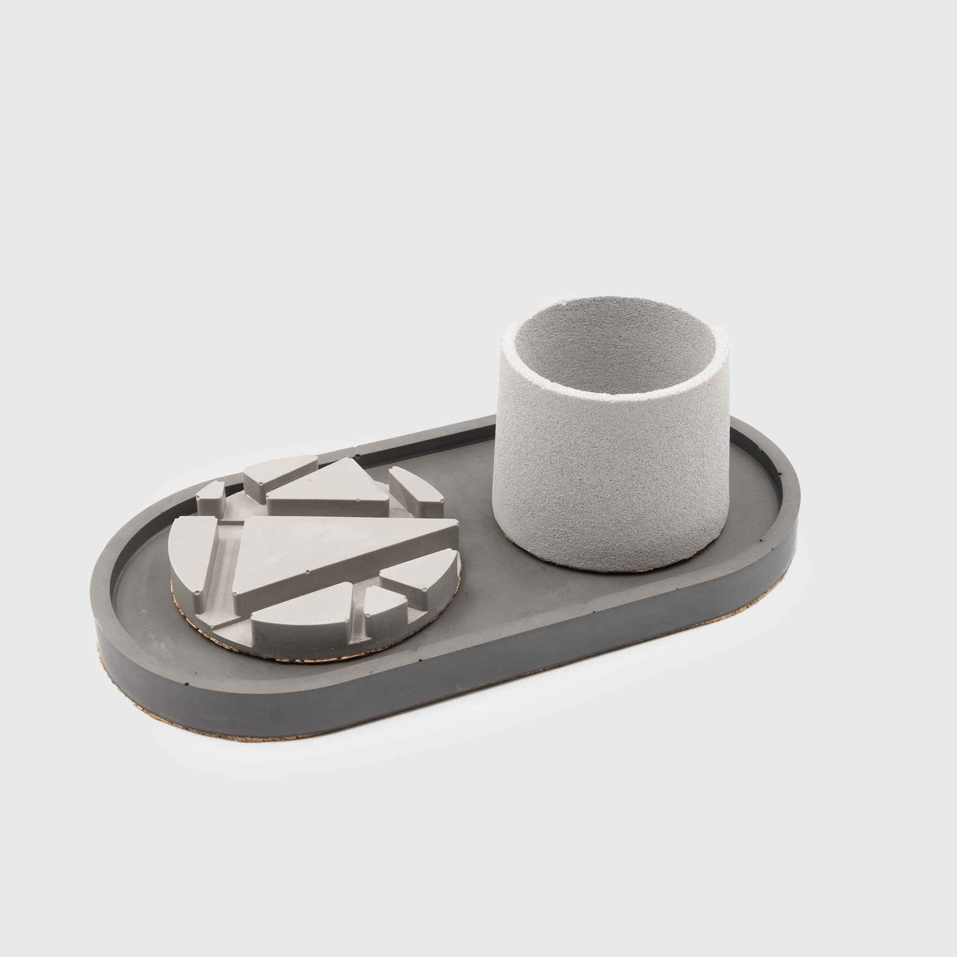 Handmade office set, including an oval multi-purpose tray, pencil holder and mobile card holder. Combining two textures and two shades, it's a super Komati for your workplace.