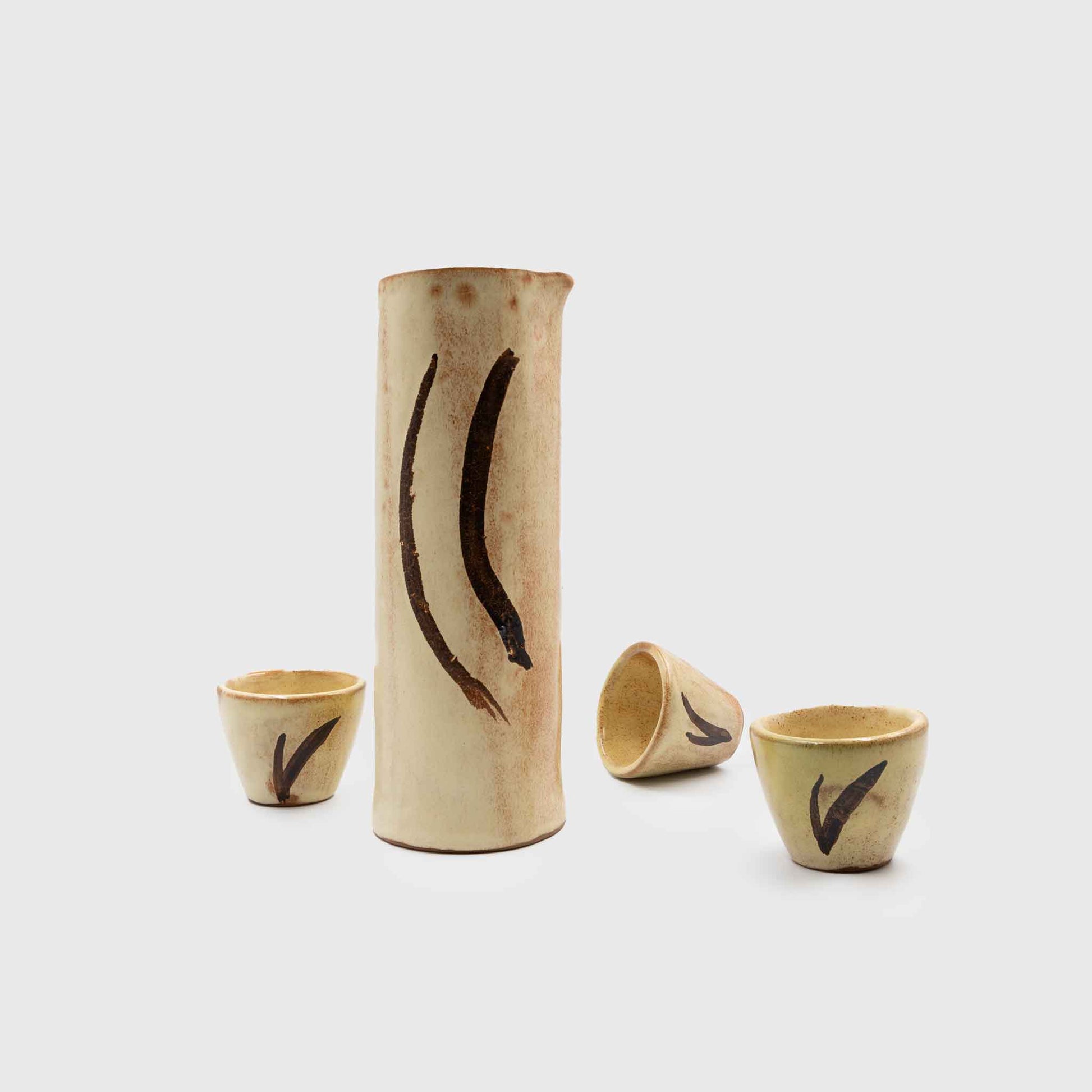 Handmade ceramic raki/wine serving set. Satin glaze with touches, red clay fired at 1035°C.