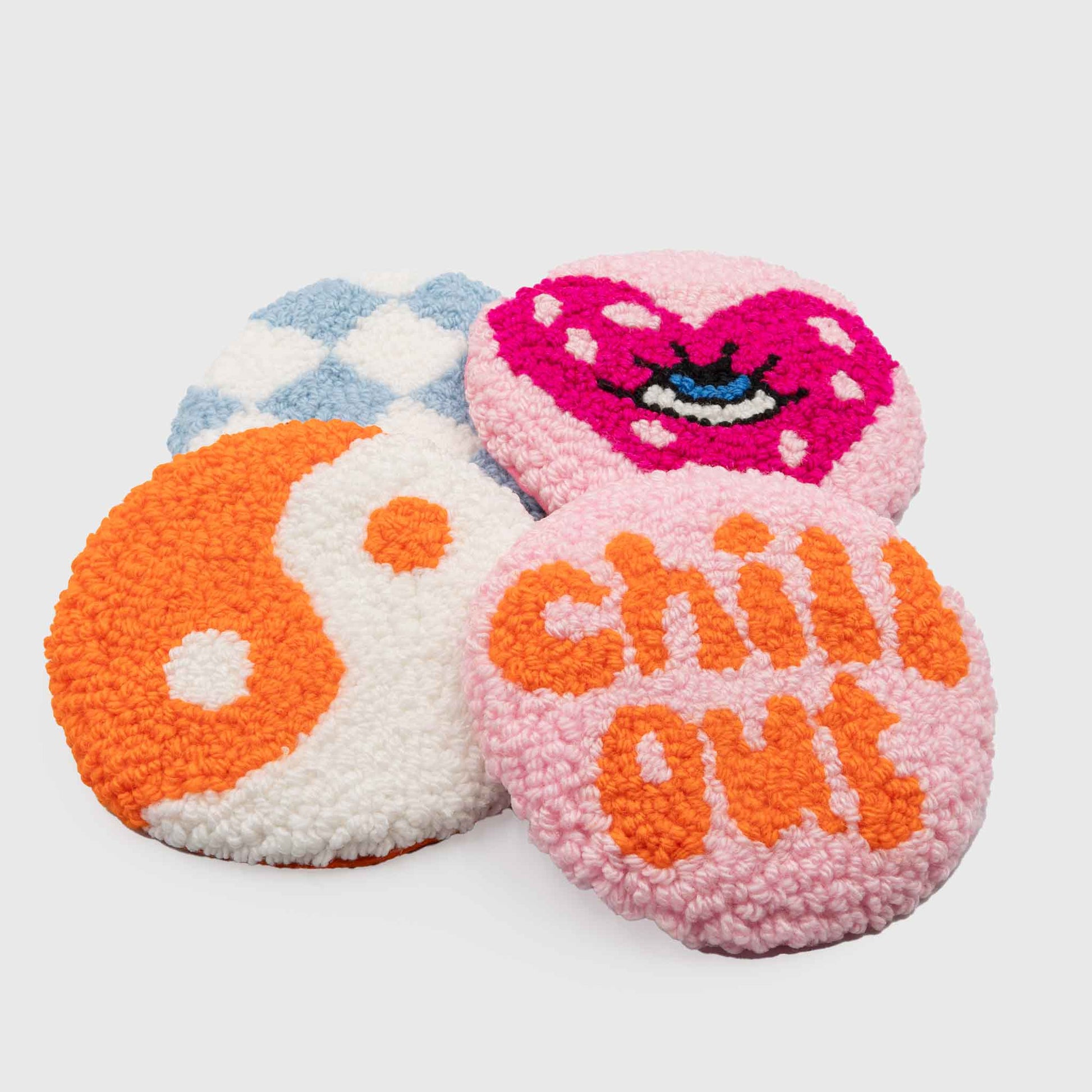 Knitted, handmade coasters. Add a colorful touch to your table, take them with you to work to touch your mug and for sure boring morning coffees will never be the same again. 100% handmade coasters are embroidered with acrylic thread and are hand washed in cold water.