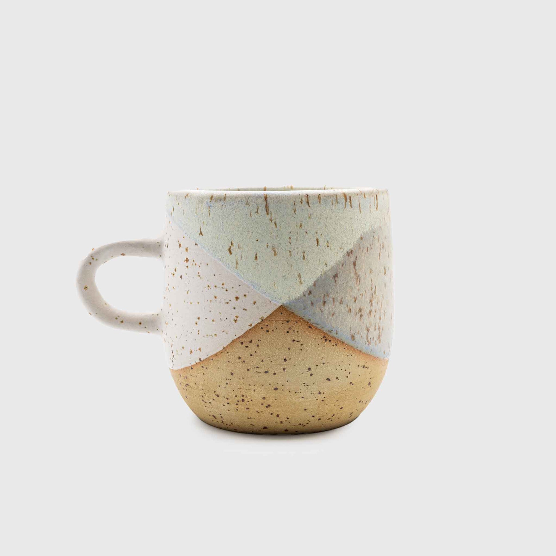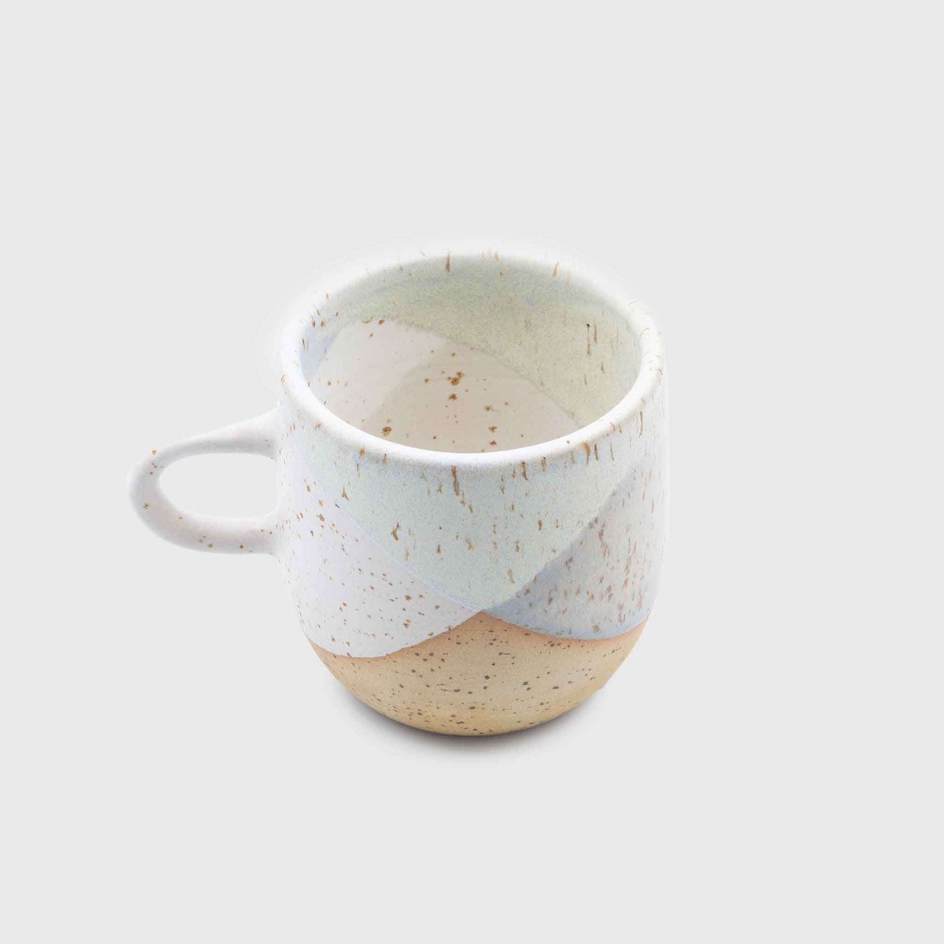Deep mug with circular handle, made of high temperature clay, at 1250°.