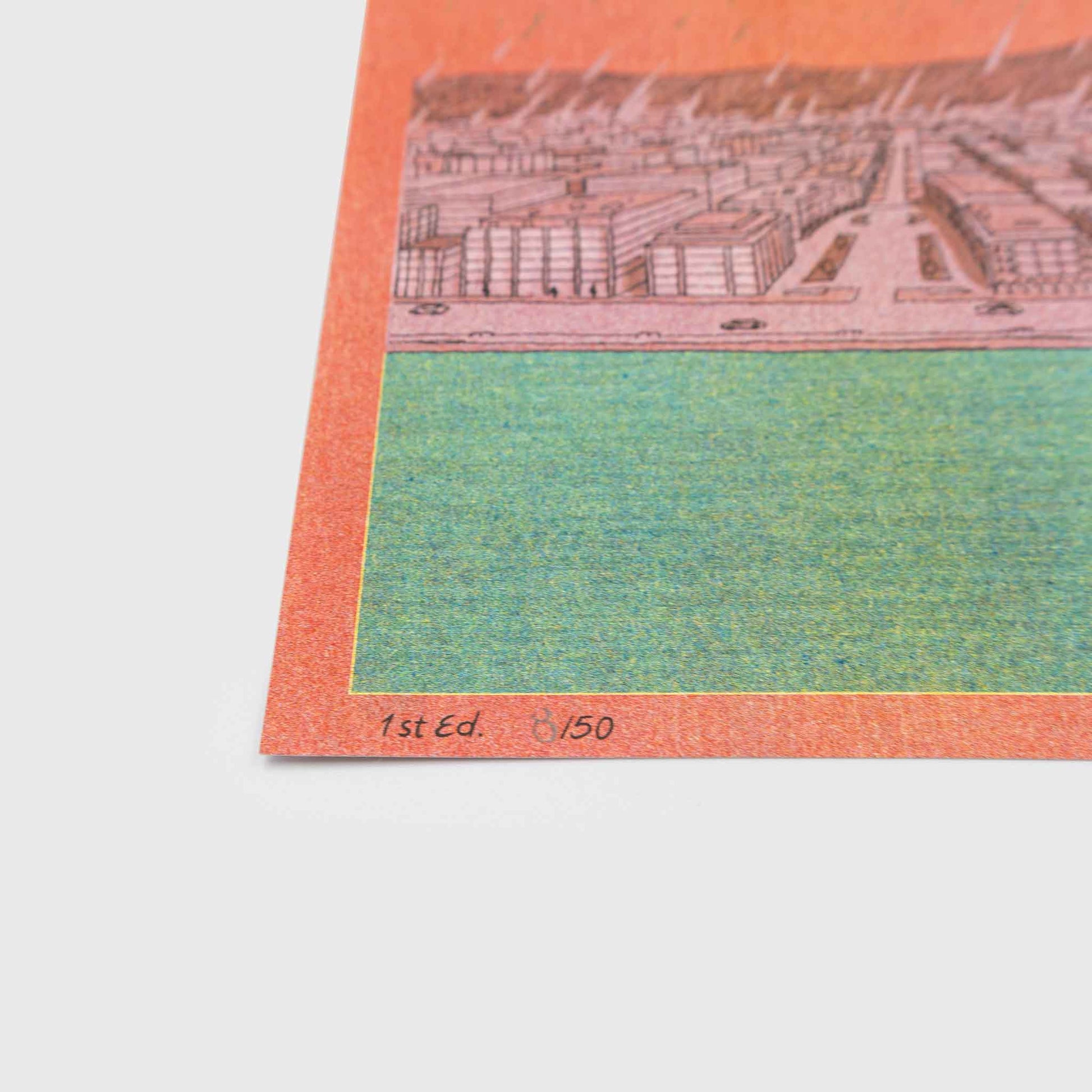 4 color rootstock print on Munken Lynx Rough 120 gsm paper . Limited edition of 50 numbered and signed copies.