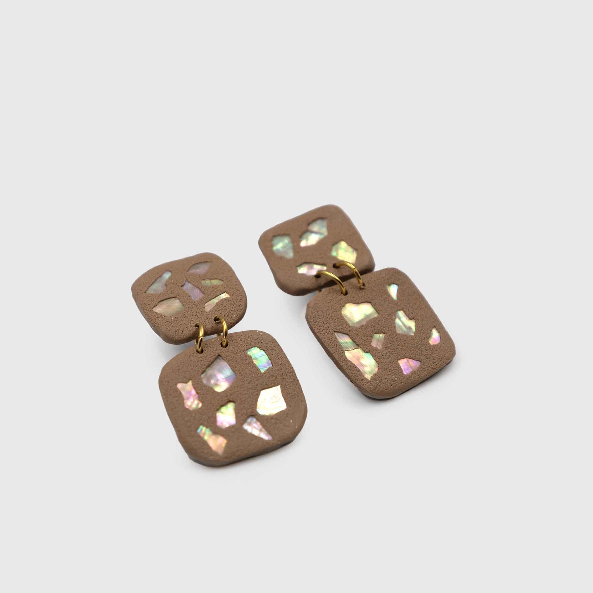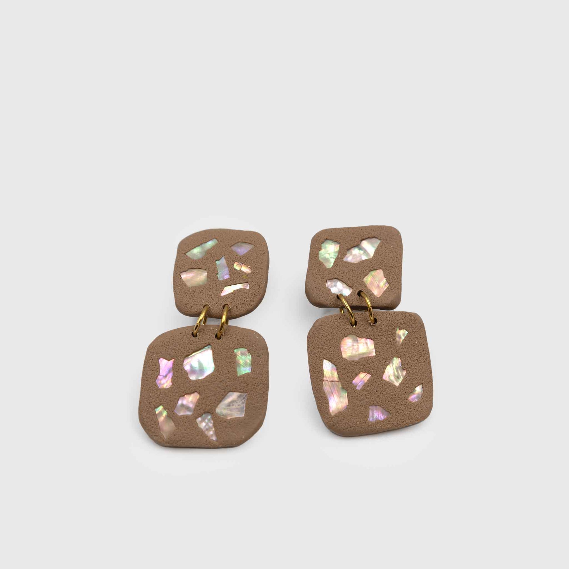 Handmade earrings made of polymer clay. Natural texture, earthy hue and reflections. Stud earrings with a subtle sand texture. Comfortable and lightweight with stainless steel clasps.