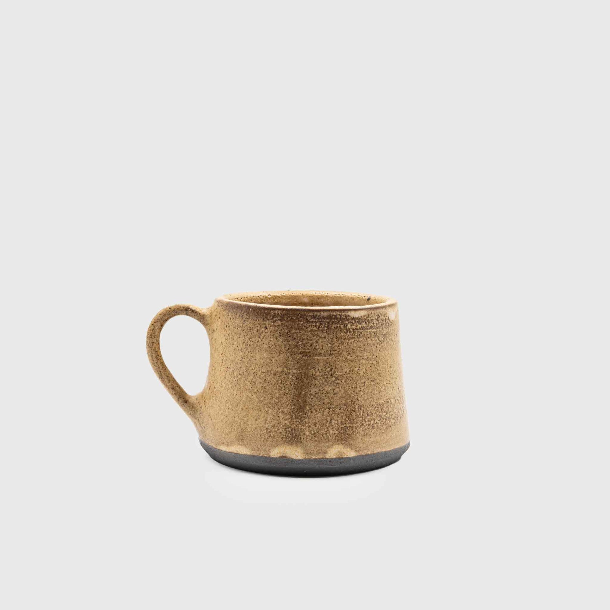 Mug with combination of gold and green glass, made with high temperature black clay at 1250°.