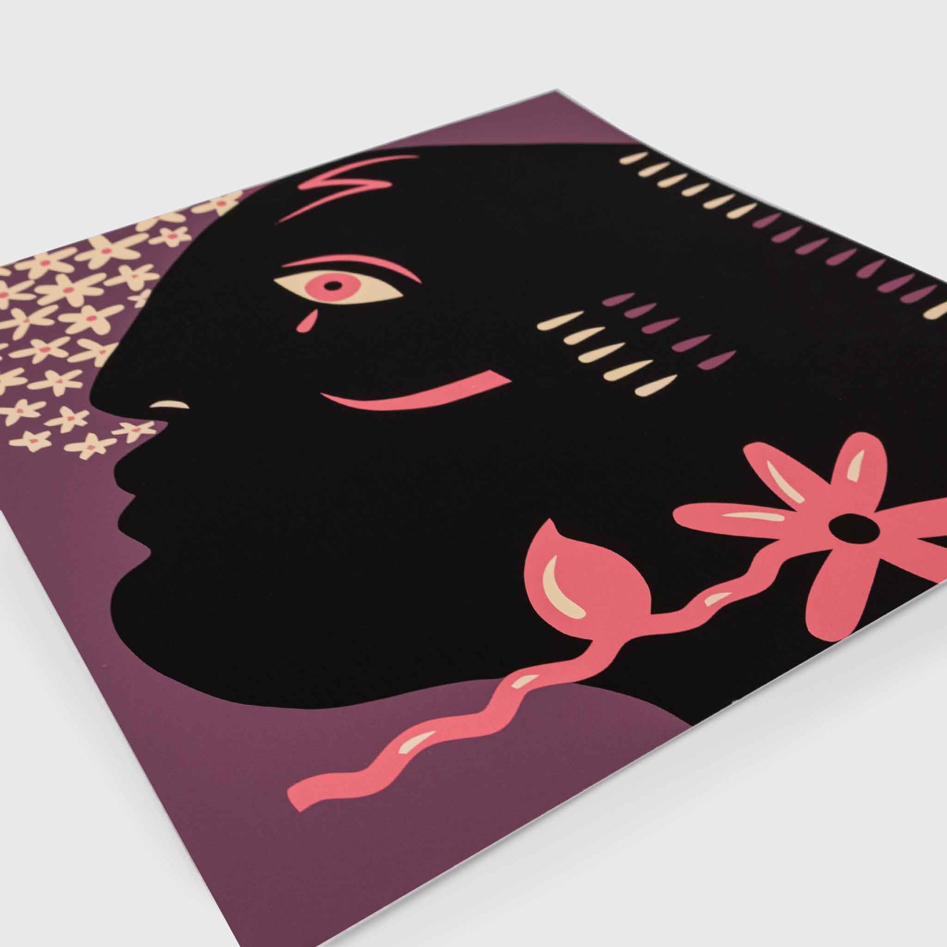 Poster, painted with fingers, on the mobile screen. Printing with pigments.