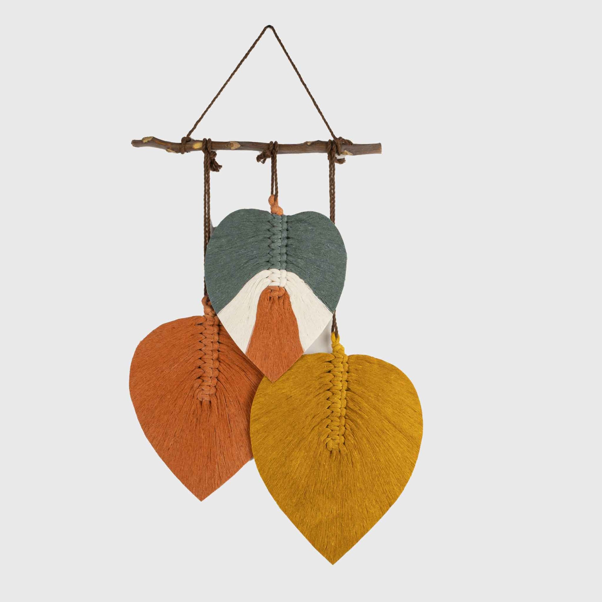 macrame: 34cm • leaves: 20x16cm, 22x18cm, 23.5x20cm •