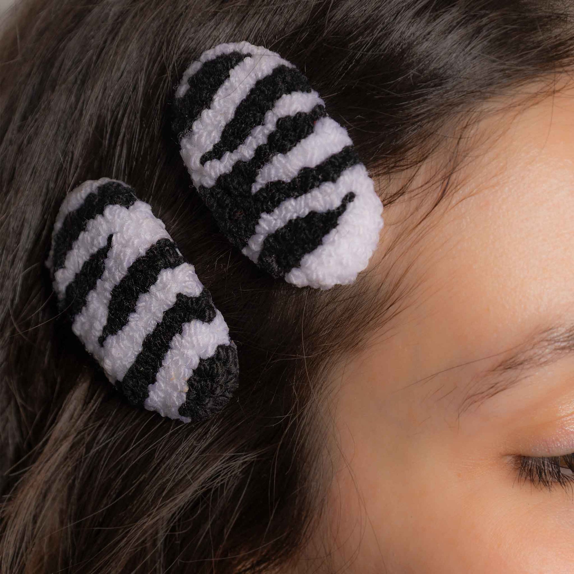 Handmade, knitted hair clips. Hand-embroidered using the punchneedle method, they are soft, comfortable and ideal for all ages!