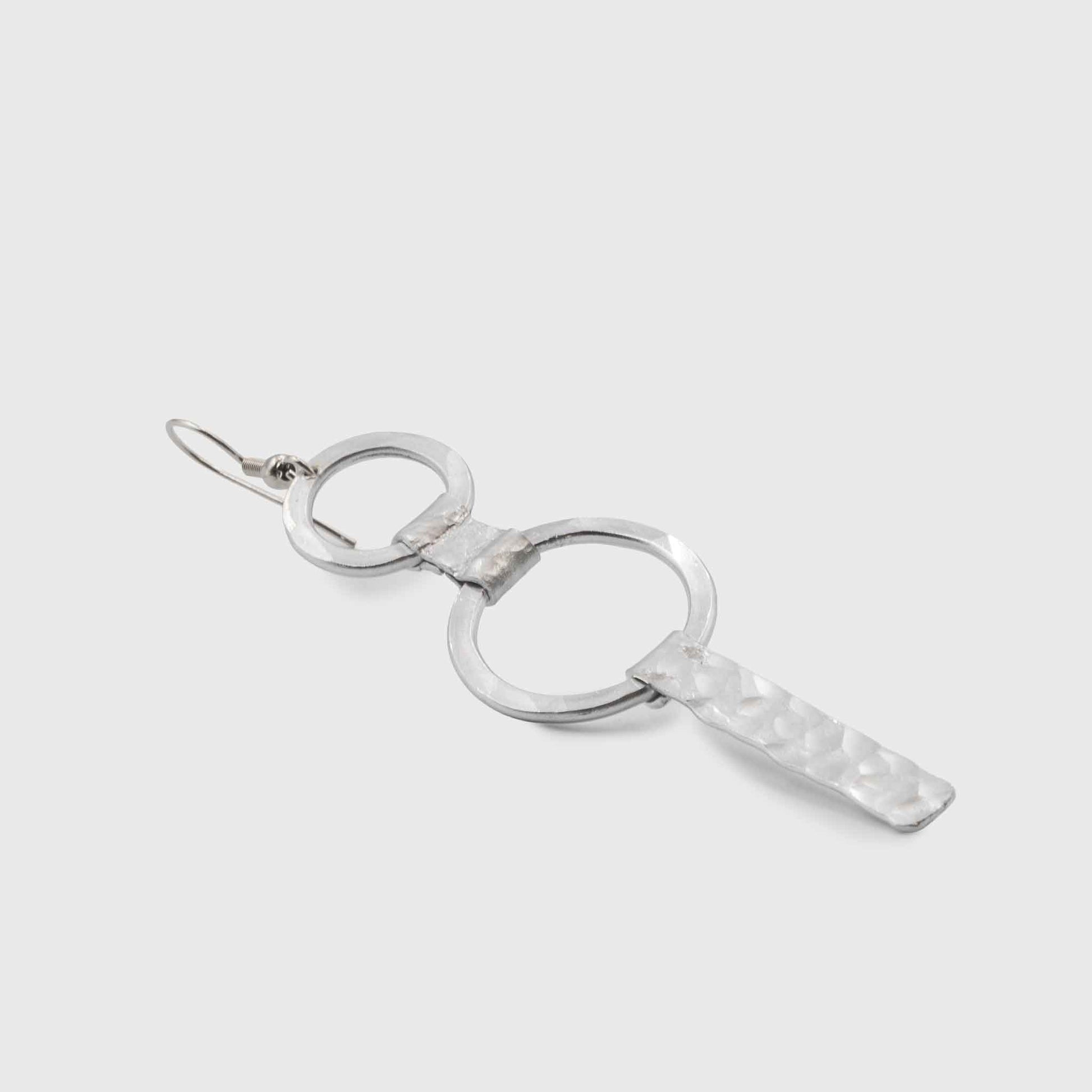 Χειροποίητα σκουλαρίκια με σφυρήλατες λεπτομέρειες, φτιαγμένα εξολοκλήρου στο χέρι από καθαρό, 100% ανακυκλώσιμο αλουμίνιο (χωρίς προσμίξεις από άλλα μέταλλα). Ανθεκτικό στο νερό και τον ήλιο, φιλικό προς το δέρμα και το περιβάλλον, με ατσάλινες λεπτομέρειες (γαντζάκια).