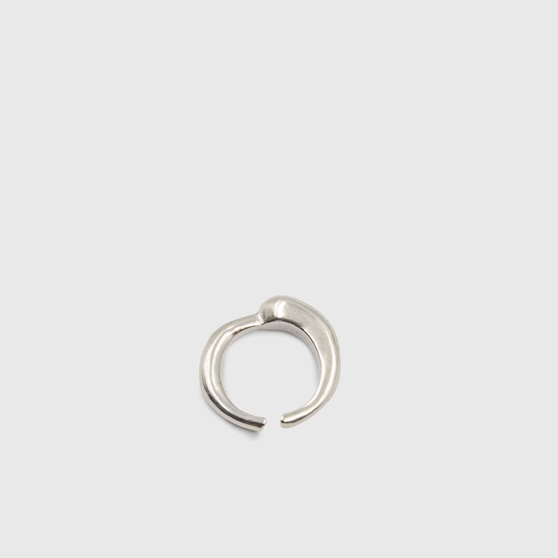 Ασημένιο χειροποίητο δαχτυλίδι με ασύμμετρο πάχος και ανοιχτό στο πίσω μέρος, ώστε να αυξομειώνεται.