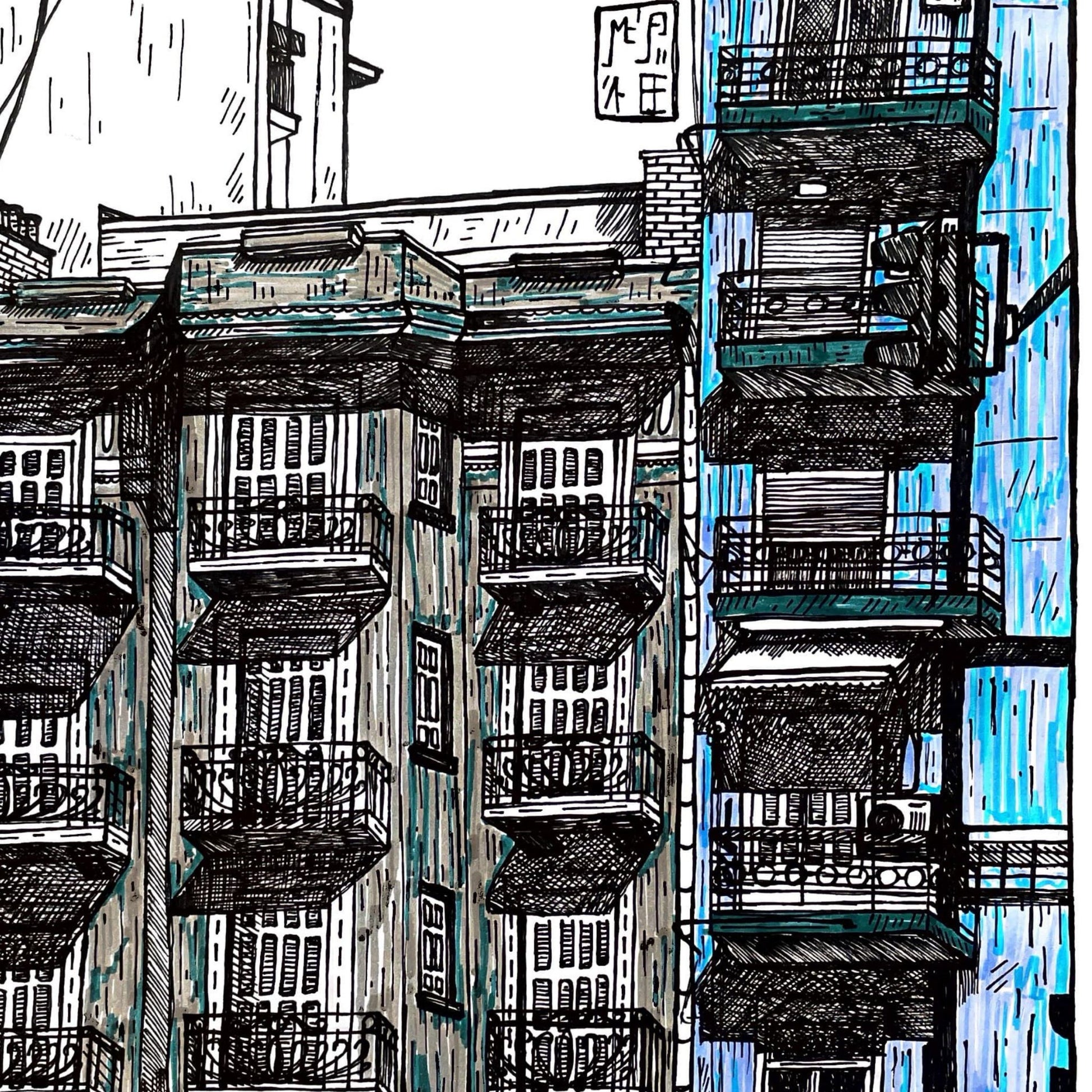 Digital print εκτυπωμένο σε velvet χαρτί 300γρ. από μοναδικά σχέδια. Αναπαράσταση κτηρίων από διάφορες πόλεις της Ελλάδας ως αποτέλεσμα ενός project. Το συγκεκριμένο είναι από την Θεσσαλονίκη στην Αγίας Σοφίας. Υπογεγραμμένα από τον καλλιτέχνη.